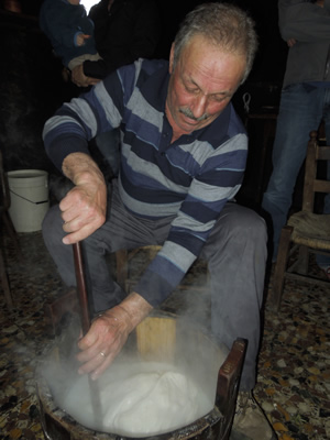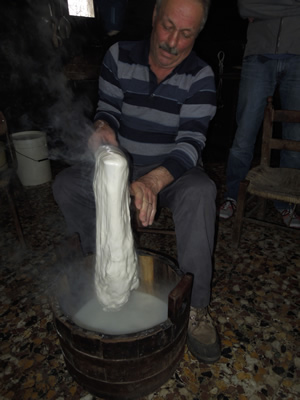 On our journey around Italy we searched for places to find authentic Italian cuisine. This was one of those special days were we stepped back in time and experienced the art of slow food. Just outside of Sepino, Italy, there is a family farm that makes artisan cheeses and cured meats year around. They mainly make it and sell to neighbors or for their own enjoyment. This day they showed us how to make Caciocavallo [kah-choh-kuh-VAH-loh] cheese. It was a true work of art.